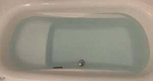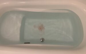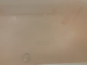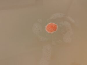 底に沈んでいた入浴剤も、溶けていって浮力が大きくなったのか、浴槽の表面に浮いてきた。