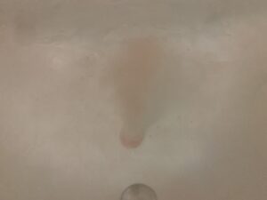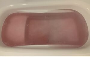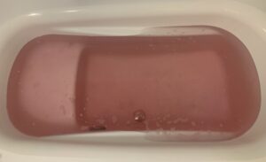 投入したばかりだが、お湯全体もうっすらとピンク色に変わりはじめた。