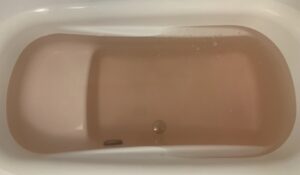 お湯の色は、透明の薄いピンク色。