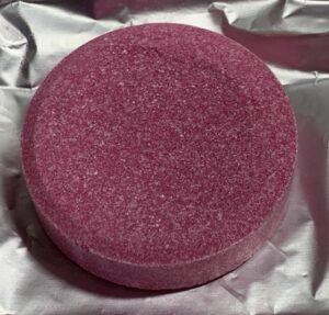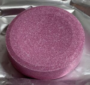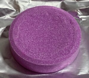 青空に桜という状況だろうか。青にピンクを混ぜて紫っぽい色合いの錠剤だ。