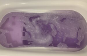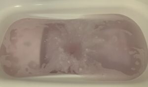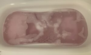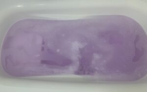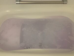 やさしい色合いの紫だ。滑らかになったお湯も相まって、ゆったり浸かってリラックスできそうだ。