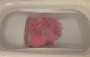 お湯に投入した瞬間、まるでピンク色の入道雲がモクモクと広がるように溶けていく。