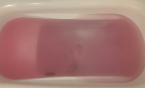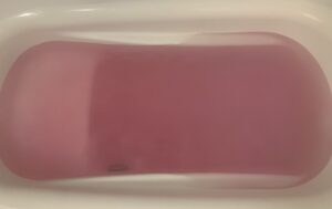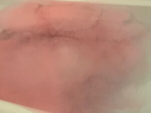 完全に溶けると柔らかなピンク色のお湯になった。